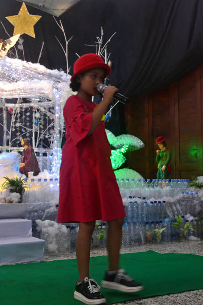 Tepat 13 anak menjadi peserta lomba menyanyi. Secara bergantian dari peserta pertama hingga terakhir menyanyikan lagu yang sudah mereka pilih. Masing-masing peserta menyanyikan 2 lagu, 1 lagu wajib pilihan dan 1 lagu bebas. Sesekali terdengar pujian dan lontaran semangat dari para orang tua peserta. Berikut ini foto dari para peserta yang tampil.