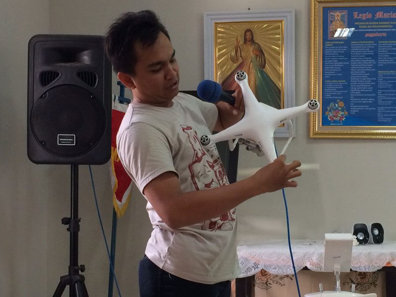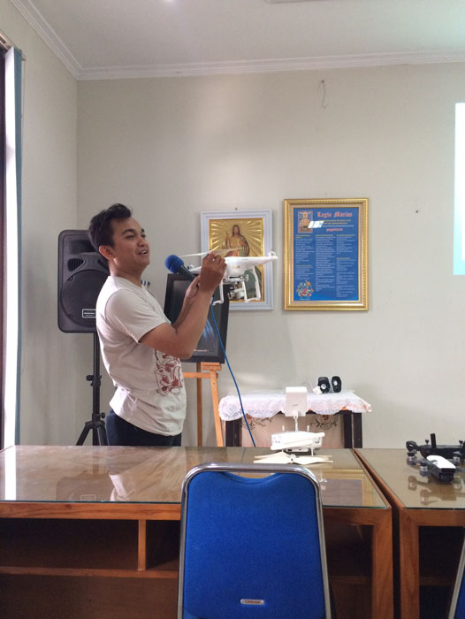 Bertindak sebagai pelatih kami yaitu Mas Wawan (Paroki Santa Perawan Maria Tak Bercela Nanggulan, Kulon Progo) dan Adri (Paroki Santo Petrus & Paulus Minomartani, Sleman). Mengenai keahlian mengendalikan drone, mereka berdua jagonya !