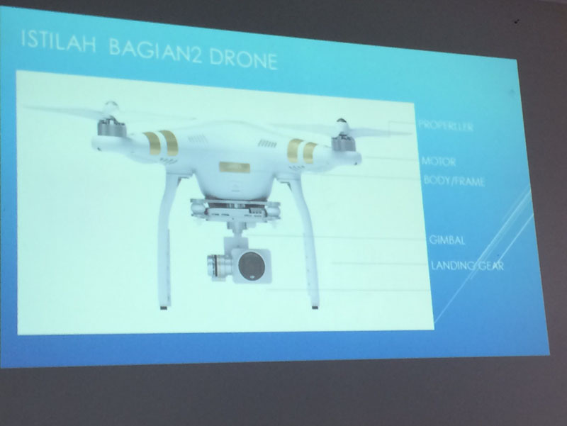 Sebelum menerbangkan drone di lapangan, kami belajar latar belakang menerbangkan drone terlebih dahulu, hal-hal teknis seperti :