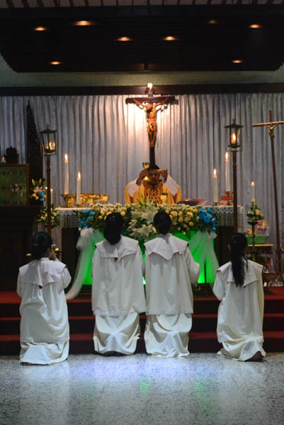 Memasuki pukul 17.00 tepat, ibadat para liturgi dimulai disusul dengan maklumat kelahiran Tuhan Yesus Kristus. Misa Vigili Natal pada sore hari ini dipimpin oleh Romo Ambrosius Heri Krismawanto Pr. dan dihadiri oleh sekitar 1500 umat. Setelah maklumat kelahiran Yesus Kristus selesai dibacakan, para petugas liturgi, romo dan perwakilan umat bersama-sama menuju gua natal dimana bayi kanak-kanak Yesus terbaring di palungan. Romo dan para petugas