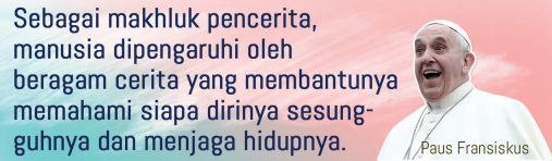 Cerita kita menjadi bagian dari setiap cerita agung. Ketika membaca Kitab Suci, kisah orang-orang kudus dan juga cerita-cerita yang mampu membaca jiwa manusia dan mengungkapkan keindahannya, Roh Kudus memiliki kebebasan menulis di dalam hati kita dan membarui diri kita, serta mengingatkan tentang siapa diri kita di mata Allah. Ketika kita mengingat cinta yang telah menciptakan dan menyelamatkan, ketika kita menaruh cinta ke dalam cerita-cerita kita setiap hari, dan ketika kita menenun jalan cerita sehari-hari kita dengan belas kasihan, maka kita akan berpindah ke halaman berikutnya.
