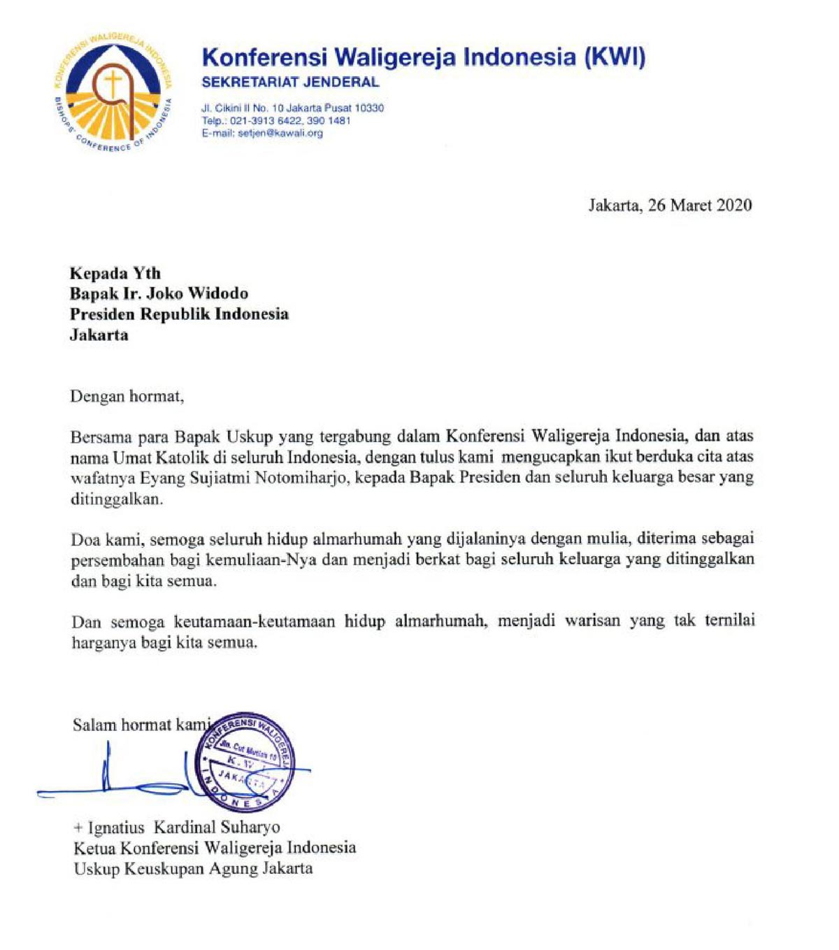 *Seperti yang telah diterbitkan oleh Mirifica.net disini : http://www.mirifica.net/2020/03/26/konferensi-waligereja-indonesia-turut-berdukacita-atas-wafatnya-ibunda-bapak-presiden-republik-indonesia/