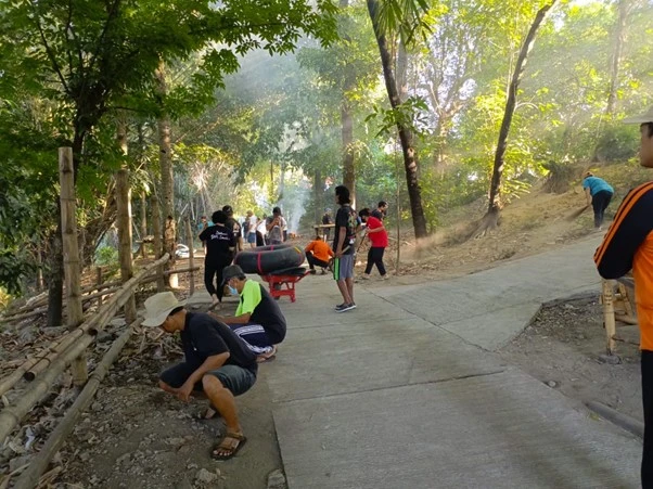 Acara Merti Sungai diakhiri dengan dahar kembul dan hiburan dari masyarakat setempat.